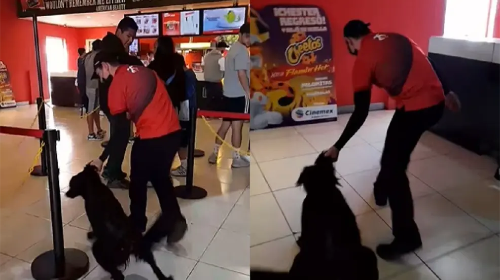 Un empleado de Cinemex fue sorprendido y captado en video sacando a un perrito arrastrándolo en las instalaciones del cine ante la mirada de decenas de clientes.