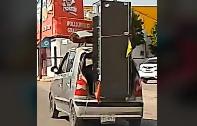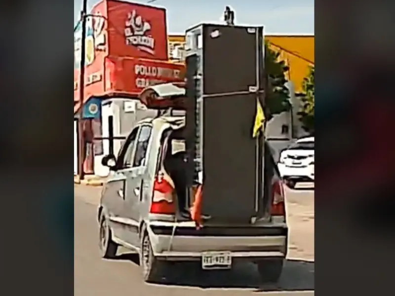 Las imágenes muestran cómo el refrigerador se encuentra firmemente sujeto a la cajuela del diminuto auto Atos, demostrando que el ingenio lagunero puede desafiar incluso las leyes de la física.El video no tardó en volverse viral, generando una gran cantidad de reacciones entre los internautas.