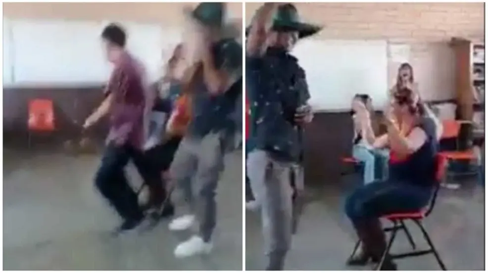 La escena transcurre en medio de un salón de clases, con reggaetón de fondo, de acuerdo a las imágenes difundidas en redes sociales.