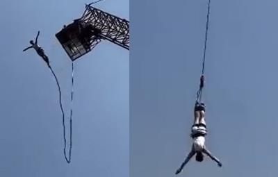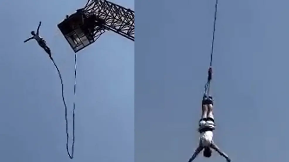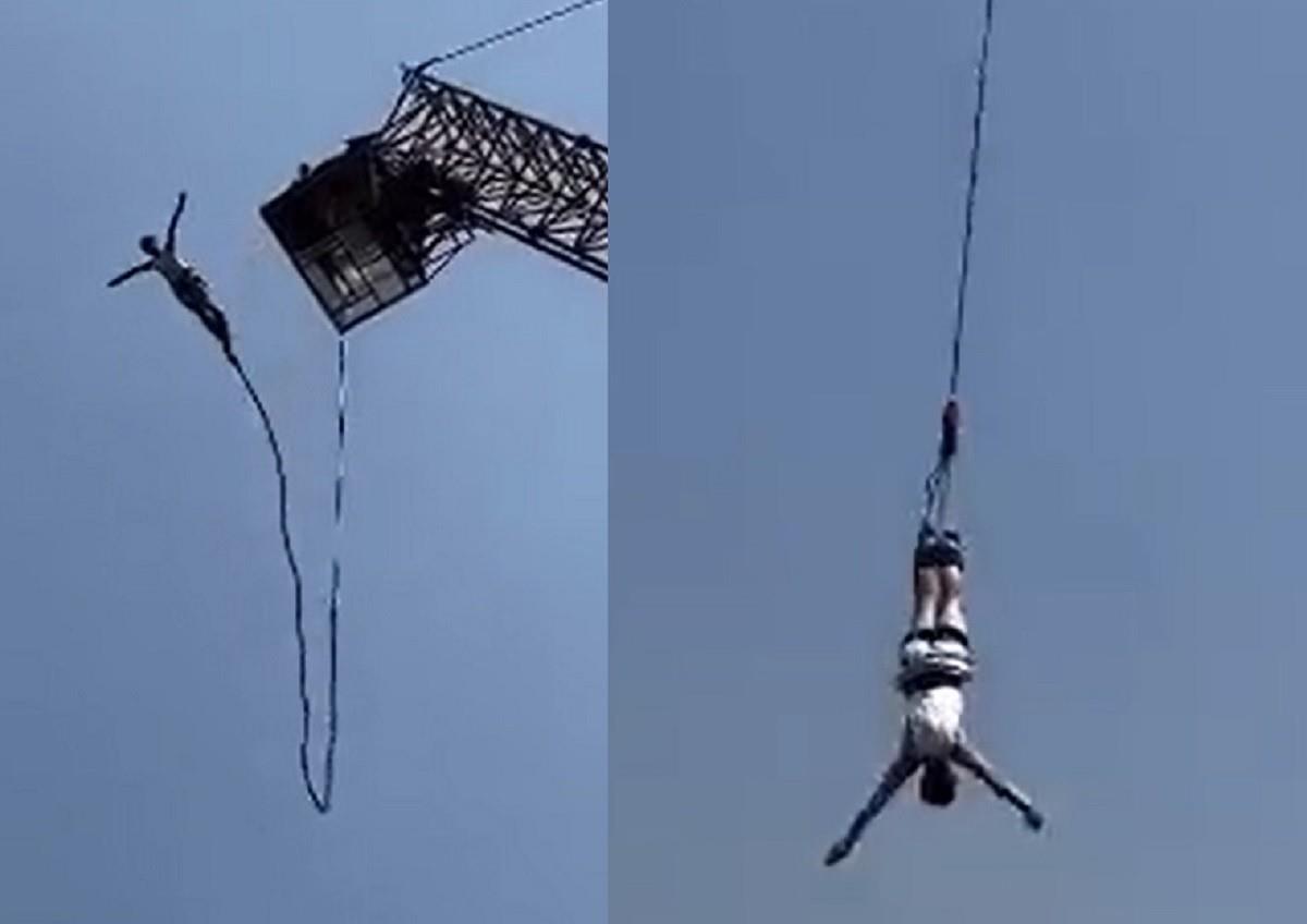 ¡Vive de milagro! Turista salta de bungee y se rompe la cuerda