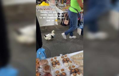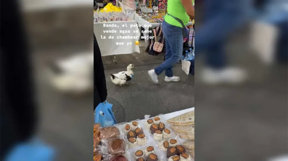 Un pato fue captado en video acompañando a su dueña a vender botellas de agua en el Centro Histórico de la Ciudad de México.