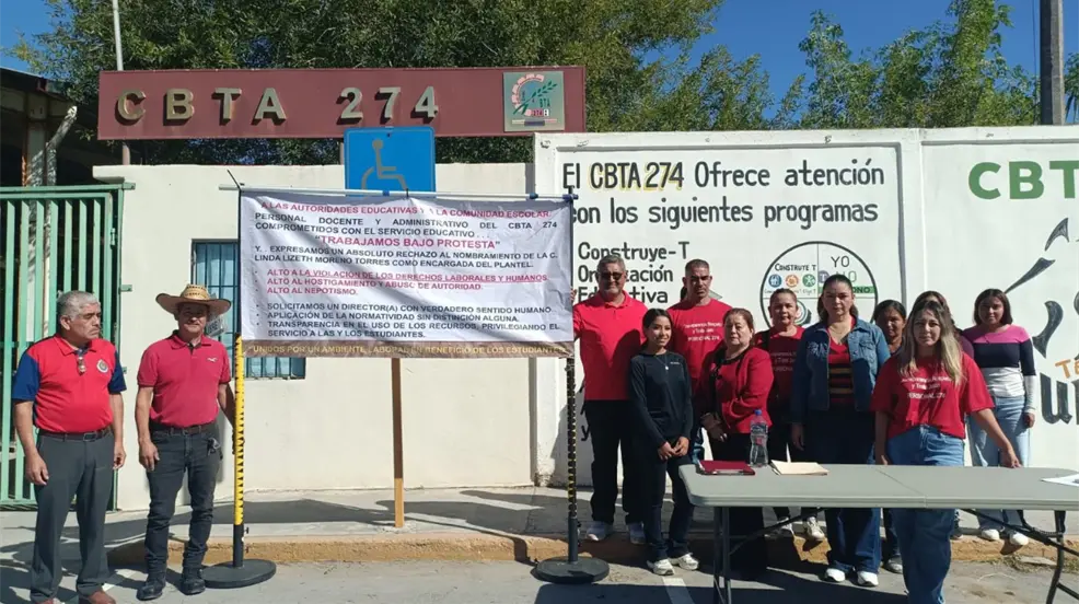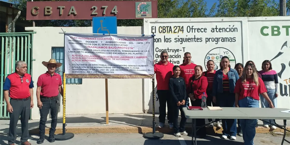 “A nadie parece interesarle la problemática al interior del CBTA 274”, dijo. Exigen que se investiguen presuntas violaciones a derechos laborales y humanos, hostigamiento laboral, abuso de autoridad, nepotismo y la transparencia en el manejo de recursos.