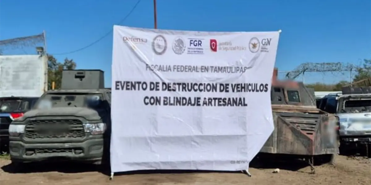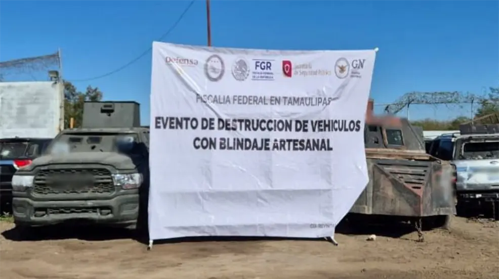 La FGR continúa su estrategia de seguridad en Tamaulipas con la destrucción de vehículos blindados; 22 unidades fueron desmanteladas.