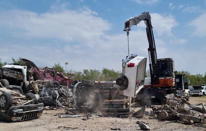 REYNOSA, Tamaulipas.- La Fiscalía General de la República (FGR), a través de la Fiscalía Especializada de Control Regional (FECOR), en su Delegación de Tamaulipas, llevó a cabo la destrucción de 25 vehículos de los denominados monstruos, con blindaje artesanal, que presuntamente fueron utilizados por personas pertenecientes a grupos delictivos.