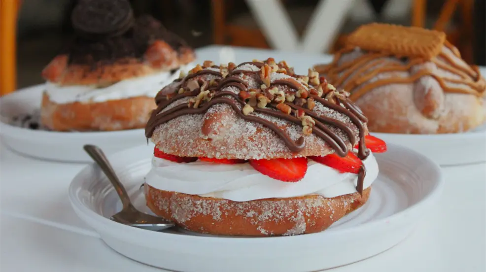 - Piernas rellenas (queso crema, cajeta, nutella, queso crema con m.fresa, queso crema con m.piña, queso crema con nutella)