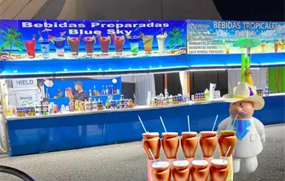 Blue Sky es un negocio originario de Monterrey, Nuevo León, el cual constantemente asiste a ferias de distintos estados para llevar sus bebidas preparadas y envases, convirtiendo en las micheladas en su especialidad. Los nombres de sus bebidas también tienen creatividad; en su menú podemos encontrar: