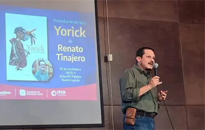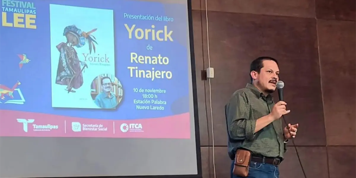 El escritor victorense Renato Tinajero, ganador del Premio Bellas Artes de Poesía Aguascalientes 2017, presentó su libro Yorick, reeditado por Medusa Editores, ante un público entusiasta conformado en su mayoría por jóvenes. Lo acompañó el autor neolaredense Marco Rodríguez Leija, quien moderó una charla donde se reflexionó sobre la poesía contemporánea y el proceso creativo.