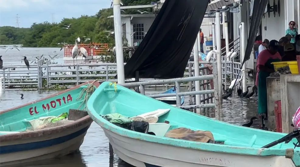 La inundación mercado de mariscos La Puntilla en Tampico afecta a locatarios y pone en riesgo la operación del centro de abasto por altos niveles de agua.