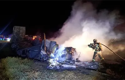 Los equipos trabajaron intensamente para sofocar el fuego, que consumió el tráiler casi por completo. Los peritos realizaron las diligencias correspondientes para el levantamiento del cuerpo y el aseguramiento del área.