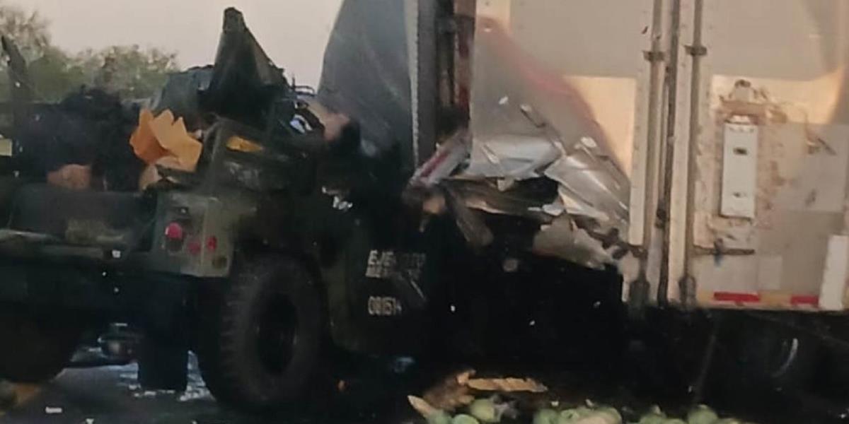 Al menos 6 miliares murieron y 7 más resultaron heridos tras chocar la unidad en que se desplazaban contra la caja de un tráiler en el municipio de Soto La Marina, Tamaulipas.