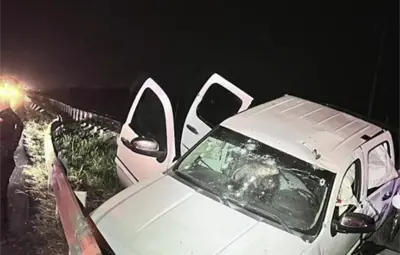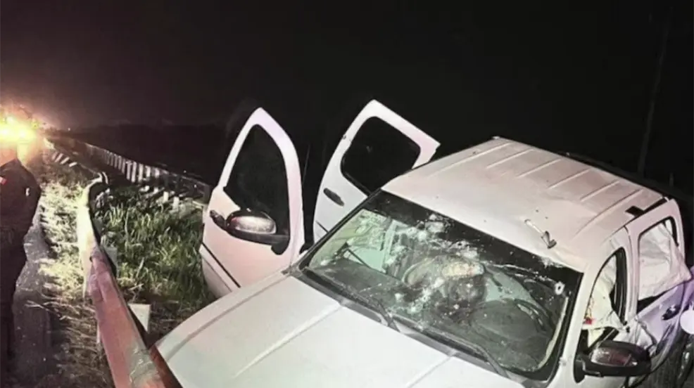 En plataformas digitales circularon fotografías de una camioneta blanca volcada, con impactos de bala, así como de personas tendidas sobre el asfalto atendidas por paramédicos.