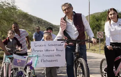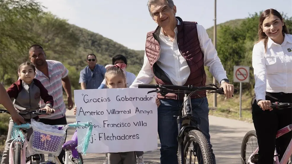 El gobernador Américo Villarreal anuncia una inversión en San Nicolás; se entregan apoyos sociales y bicicletas a estudiantes.