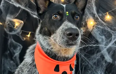 Sesión de fotos Halloween mascotas Ciudad Victoria en Allegree, con disfraces y accesorios para que tu perro o gato luzca en esta temporada.