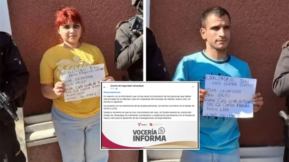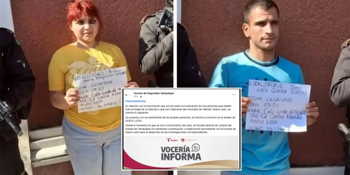 La Vocería de Seguridad de Tamaulipas emitió una aclaración urgente en respuesta a la información que circuló en diversos medios y redes sociales, la cual vinculaba erróneamente al estado con la reciente localización de tres personas originarias del municipio de Allende, Nuevo León, que habían sido víctimas de secuestro.