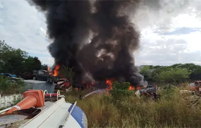 Sofocan incendio en un encierro de vehículos chatarra en la carretera Mérida–Cancún
