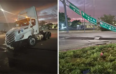 Caos en el Periférico de Mérida por un tráiler que derribó señalamientos y bloqueó tres carriles