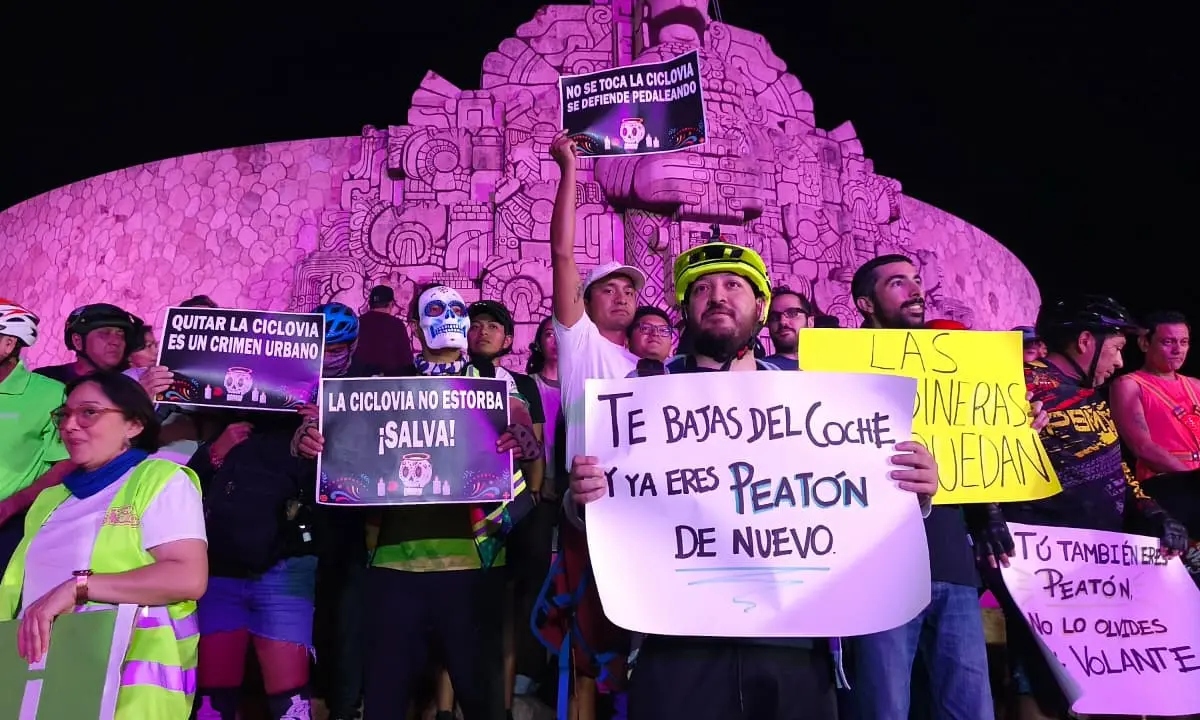 La disputa por el espacio público en Mérida llegó a Paseo de Montejo, donde ciclistas y peatones realizaron una manifestación para exigir que no se retiren las jardineras que separan los carriles vehiculares de las ciclovías y zonas peatonales.