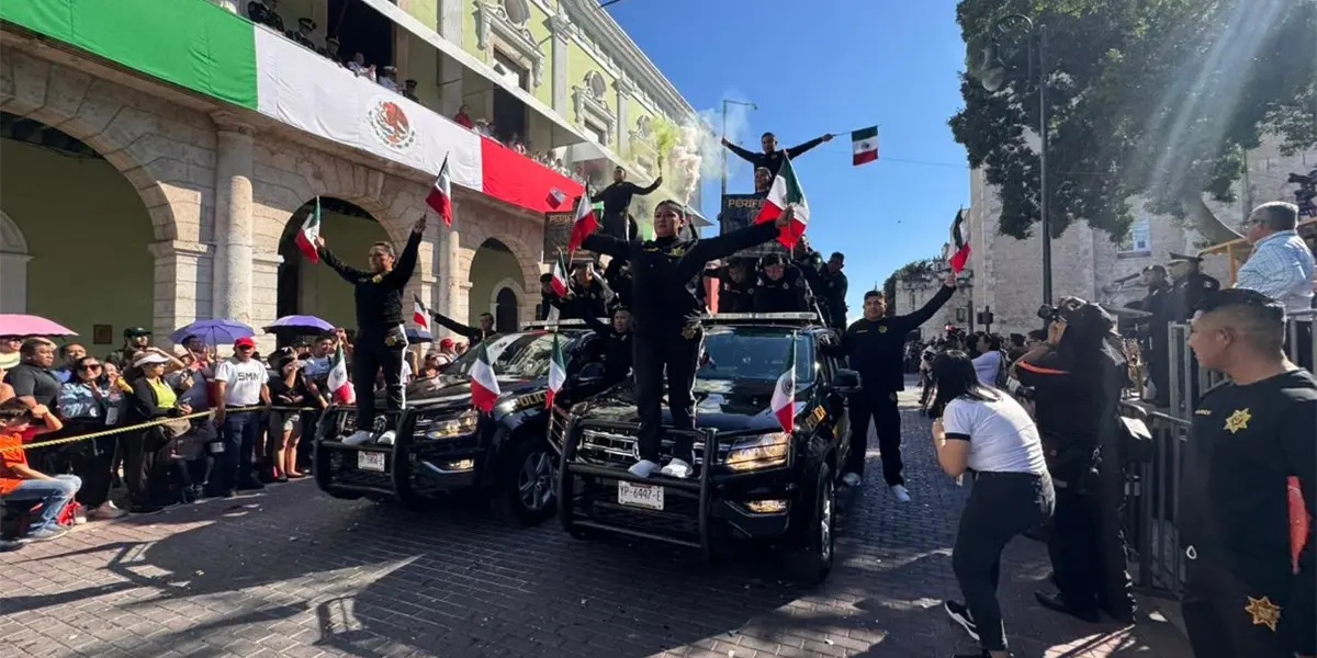 Cientos de yucatecos se dieron cita en el Centro Histórico para disfrutar el desfile conmemorativo, que inició con el izamiento de la bandera en la Plaza Grande.