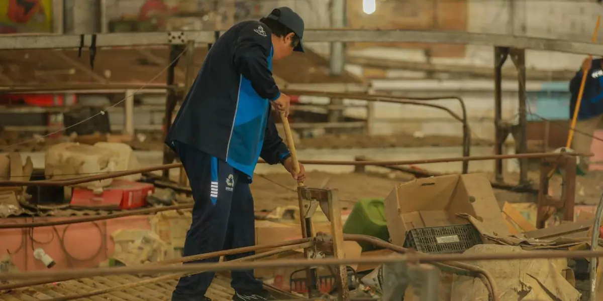 Los trabajadores municipales acudieron al lugar el domingo por la mañana para retirar residuos que estaban acumulados en los techos del mercado y se logró recolectar aproximadamente 32 metros cúbicos de desechos con un peso de casi tres toneladas.