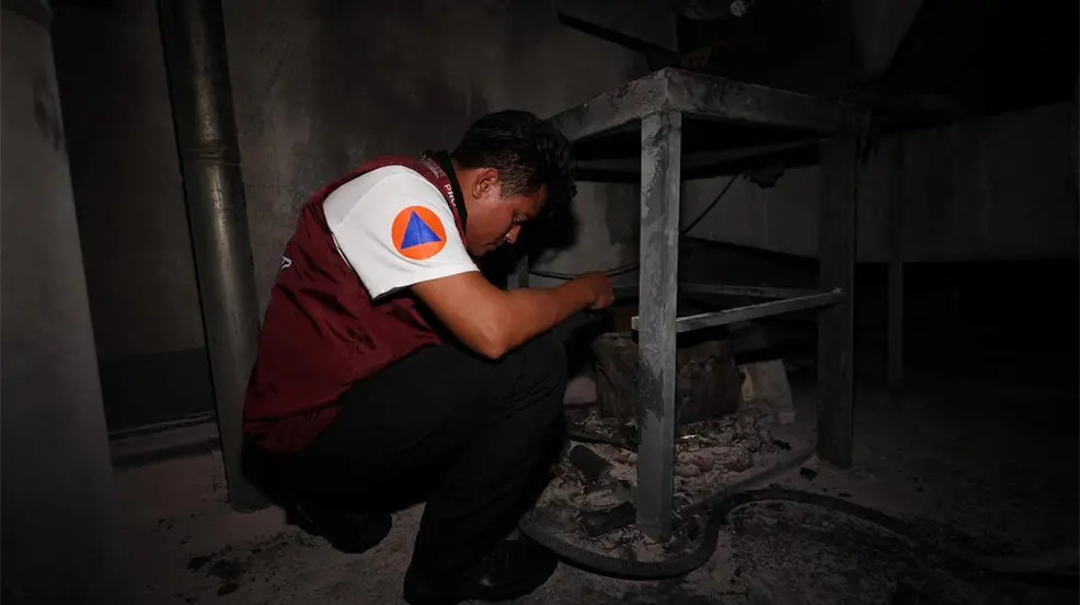 Área afectada por el humo detectado en plaza la Isla Mérida. Foto: Protección Civil de Yucatán