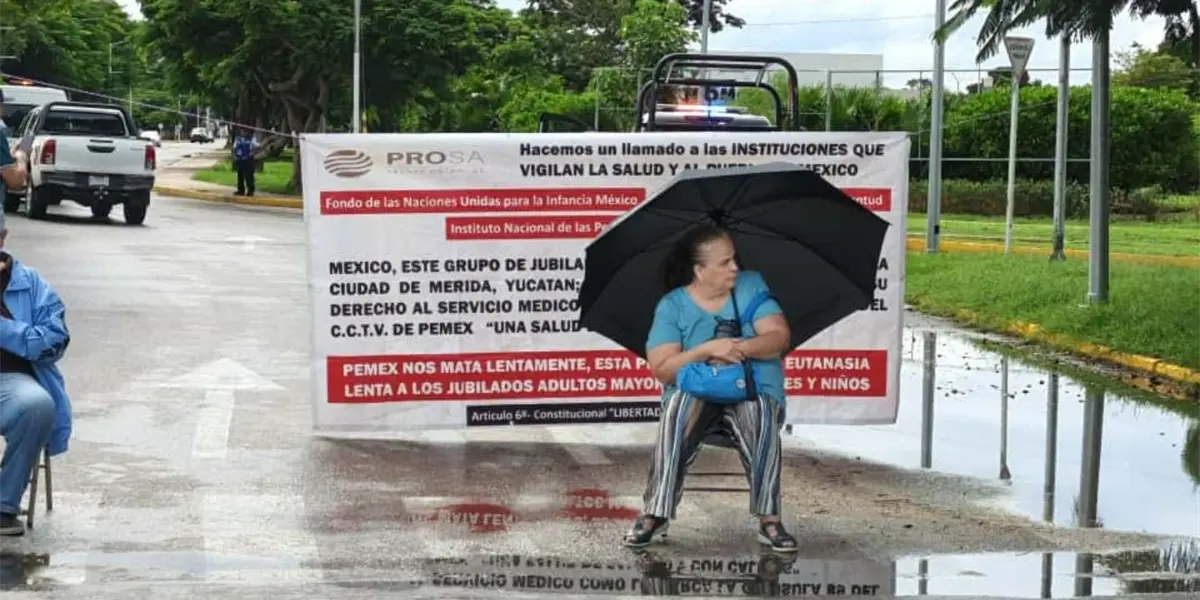 Un grupo de jubilados de Petróleos Mexicanos (PEMEX) bloqueó este lunes por la mañana uno de los carriles de la avenida Internacional, a la altura del aeropuerto de Mérida, para exigir el restablecimiento del servicio médico que, aseguran, les ha sido negado durante los últimos cuatro meses.