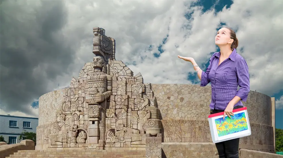 En Mérida, el día iniciará con nubes y claros, temperaturas alrededor de 28 °C y posibles lluvias débiles por la tarde, alcanzando los 31 °C. Durante la noche, el cielo estará parcialmente nublado, con 26 °C y vientos del norte de hasta 12 km/h.
