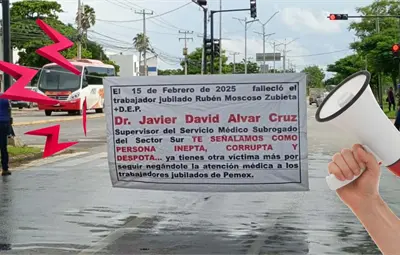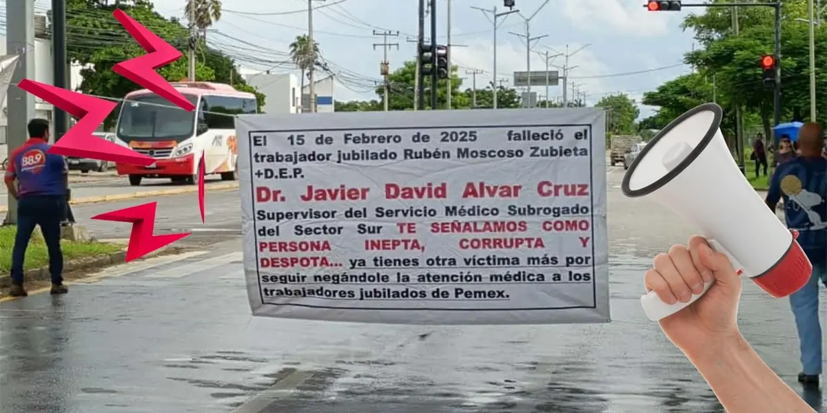Un grupo de manifestantes de PROSA A.C. cerró esta mañana un carril de la avenida Internacional, a la altura del aeropuerto, para exigir atención médica por parte de PEMEX.