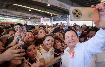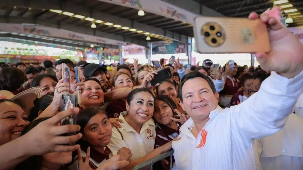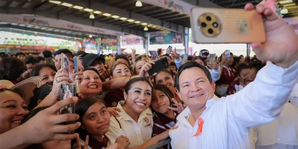 Durante su intervención, el gobernador informó sobre la creación de una nueva beca estatal dirigida a estudiantes que ingresen a universidades públicas, llamada “Juventudes Renacimiento”, la cual busca complementar los programas federales ya existentes, como la beca Benito Juárez.