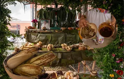 Según la tradición yucateca, el altar de muertos no es solo un lugar para depositar comida, sino un espacio simbólico y espiritual donde se honra y recuerda a los seres queridos que ya partieron.