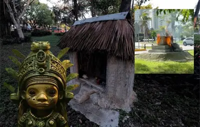 Gran preocupación generó en la sociedad de Cancún el incendio de la Casita de los Aluxes, que es un tipo de ofrenda colocada en una avenida de la ciudad y, según la creencia maya de la región, sirve como protección.