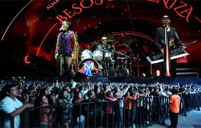 El momento más esperado llegó con Matute en el Centro de Espectáculos Montejo, que prendió con una producción vibrante de luces y sonido. Temas icónicos como “Maldita Primavera” y “Ni tú ni nadie” desataron un coro multitudinario que convirtió el recinto en un viaje nostálgico por los años 80 y 90.