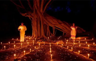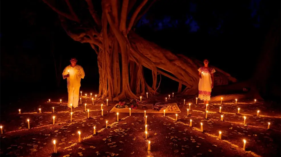 Aquí se honra el viaje espiritual y se ilumina el camino de regreso con velas y ofrendas dulces.