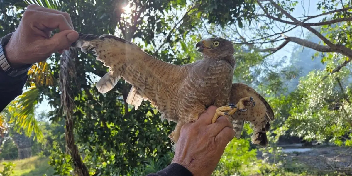 Rescatan en Yucatán a un ejemplar de aguililla caminera con las plumas de las alas cortadas