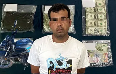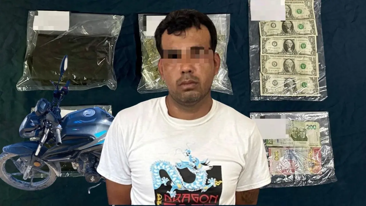 Un sujeto, quien fue visto por autoridades de seguridad de Cancún junto a una motocicleta, se delató solo al ponerse nervioso, por lo que se le procedió a realizarle una revisión, encontrándole varios paquetes de droga, hecho por el cual fue detenido por estar presuntamente implicado en delitos contra la salud.