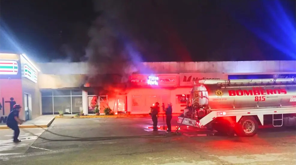 Una tienda de ropa femenina ardió en llamas la noche de este viernes en una plaza comercial en el fraccionamiento Francisco de Montejo