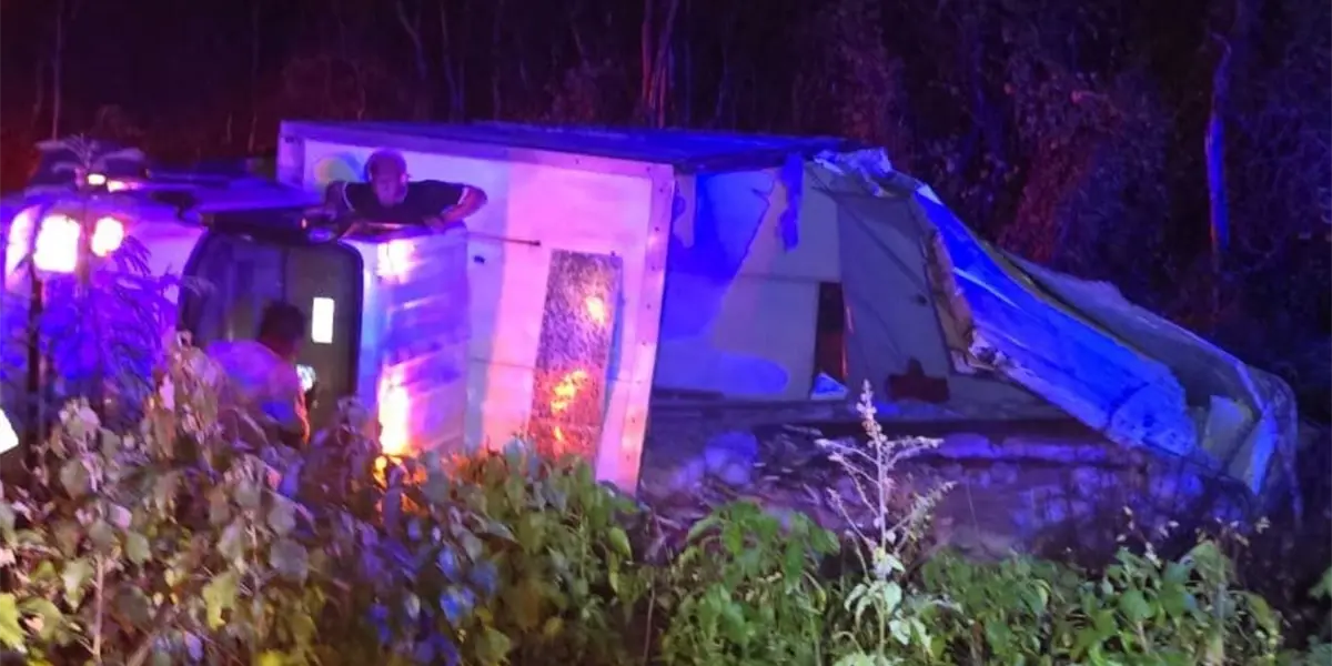 De acuerdo con los reportes, el conductor de un camión Isuzu con caja cerrada se dirigía hacia Mérida cuando, al intentar orillarse demasiado, invadió el carril contrario y perdió el control de la unidad.
