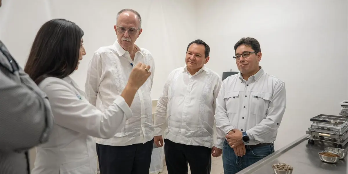 El gobernador Joaquín Díaz Mena y el titular de la Secretaría de Agricultura y Desarrollo Rural (Sader), Julio Berdegué Sacristán, analizaron la infraestructura del laboratorio de la UADY para explorar la creación de una biofábrica modular destinada a producir moscas estériles.